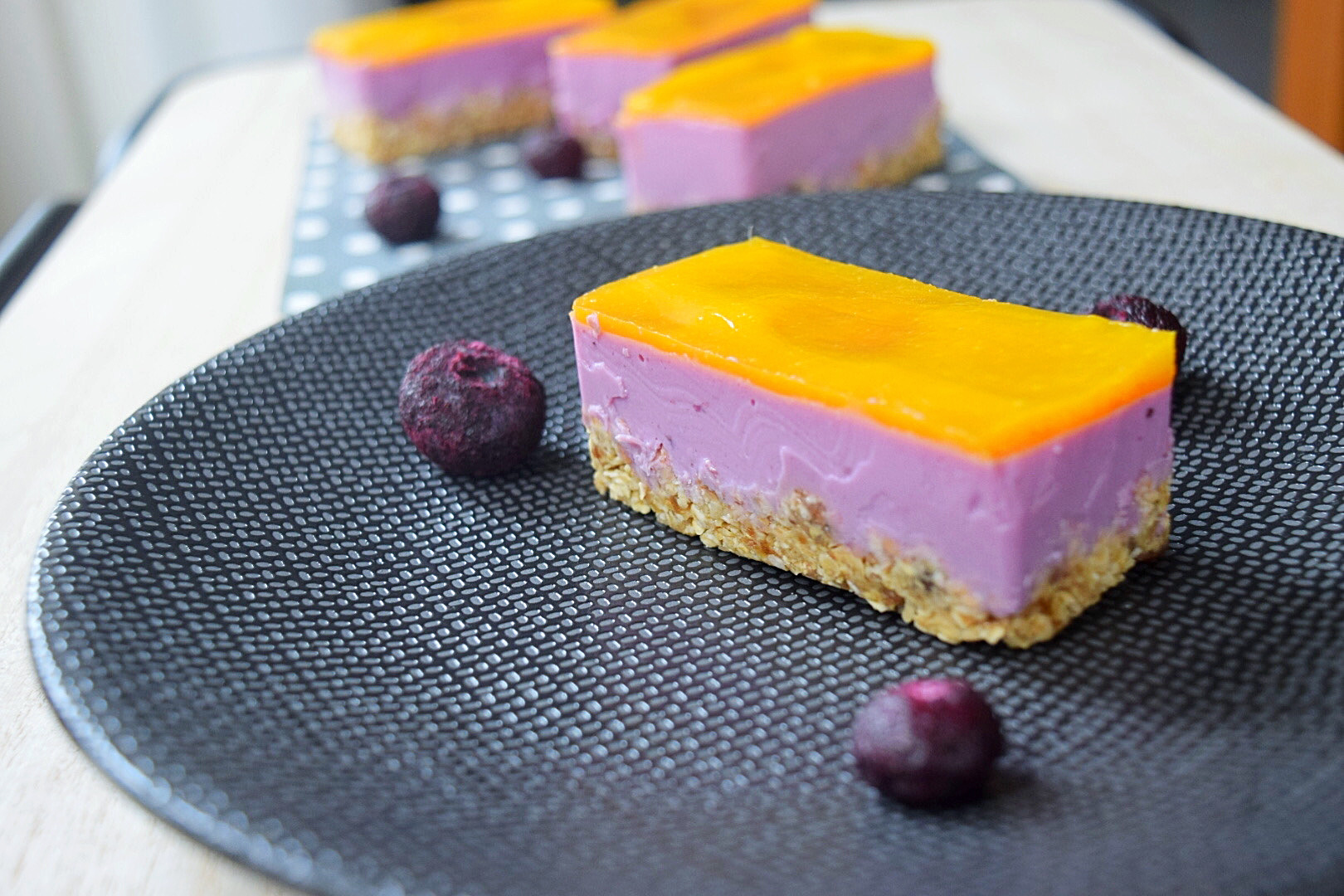 Daar is ie dan!! Dit schattige taartje is niet alleen lekker, hij ziet er ook super schattig uit. Daarnaast is dit blauwe bes mango taartje gluten- lactose- en suikervrij.